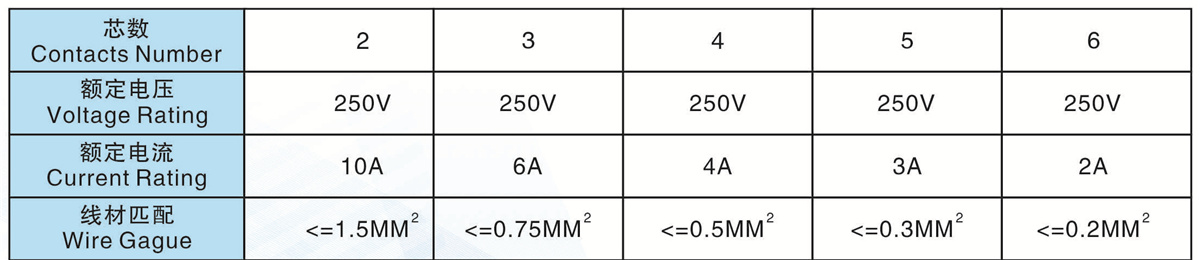 芯數(Contacts Number): 2 - 6芯